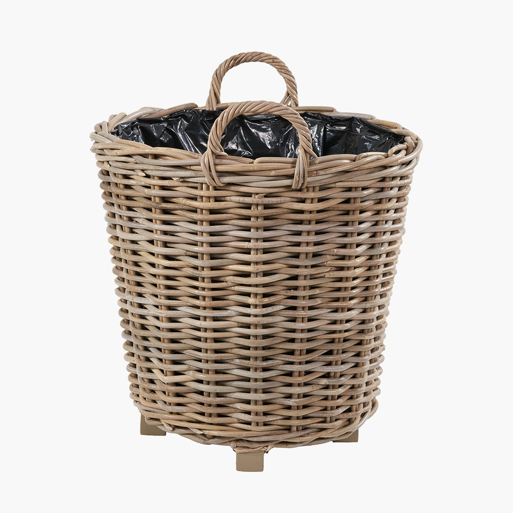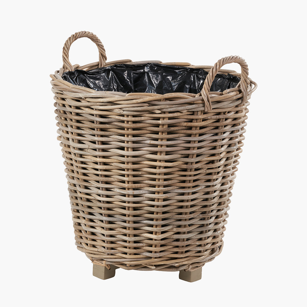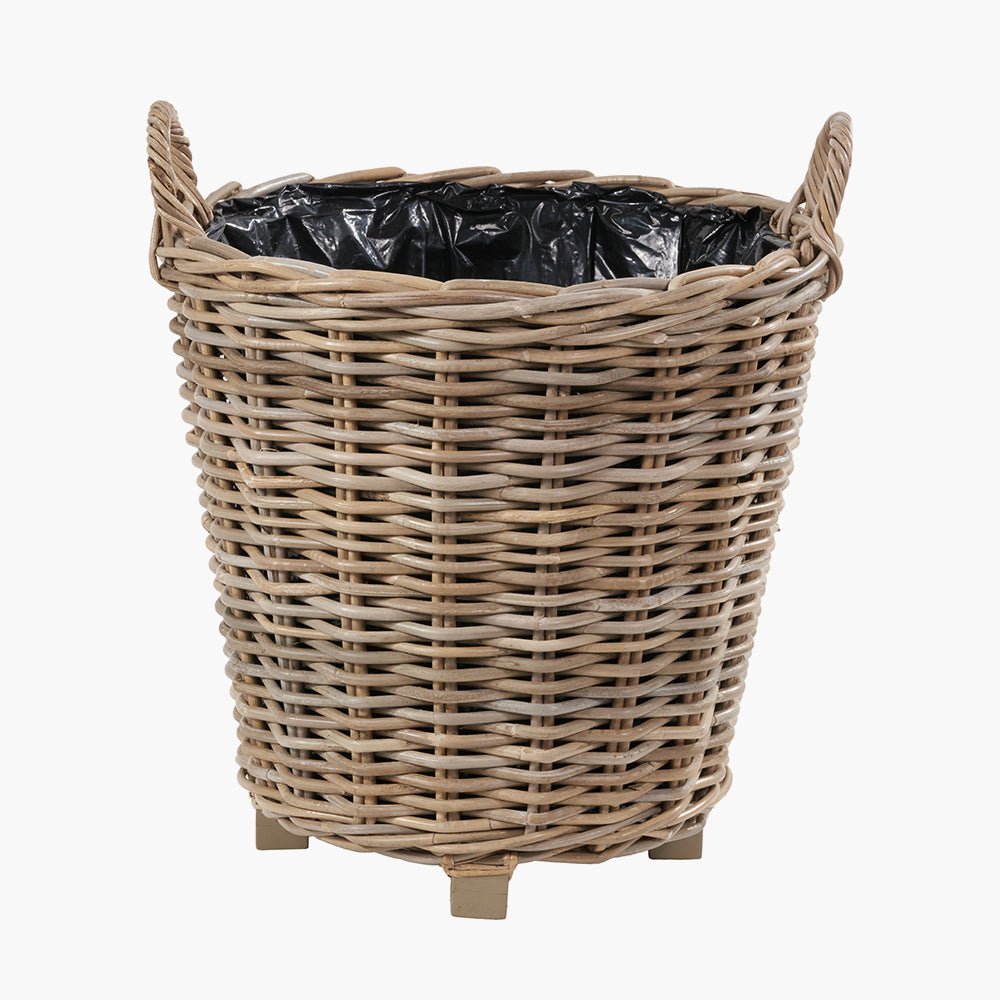 Transform Your Space with the Tobs Indoor Outdoor Grey Kubu Rattan Round Basket Planter with Handles