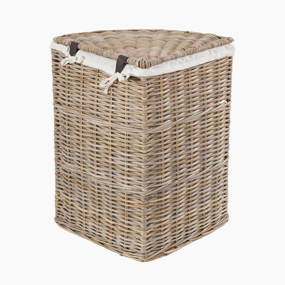 Elevate Your Home Storage with Tobs S/2 Grey Kubu Rattan Lined Corner Linen Baskets