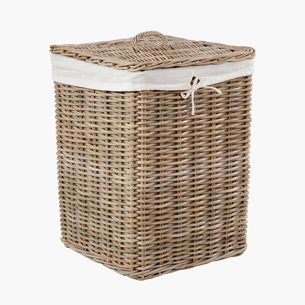 Elevate Your Space with the Tobs S/2 Grey Kubu Rattan Square Linen Baskets