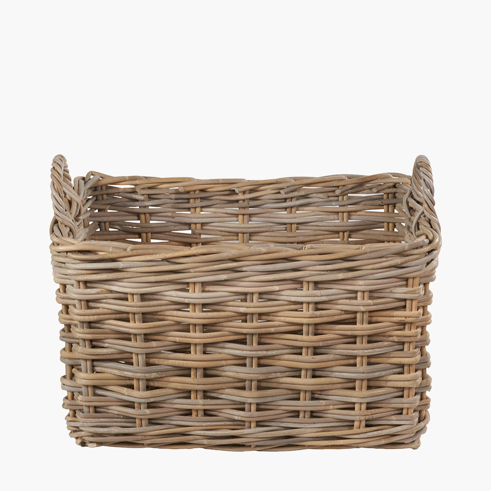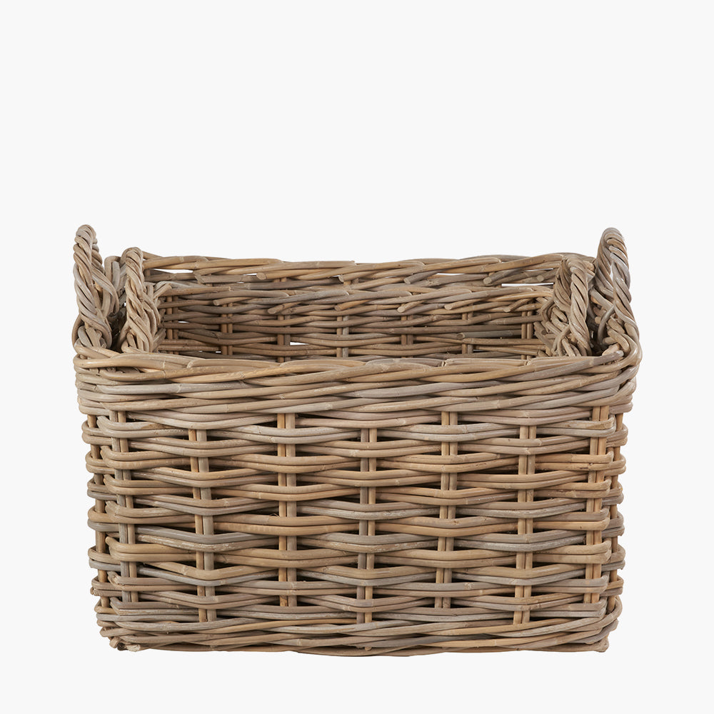 Transform your home with our tobs�� set of 2 rectangular Kubu rattan log baskets. Crafted in Indonesia from sturdy rattan and with convenient handles, these storage baskets are perfect for organising logs, blankets, magazines, and more. Bring a touch of rustic charm to any room with these stackable baskets in a grey hue, that will suit any interior.