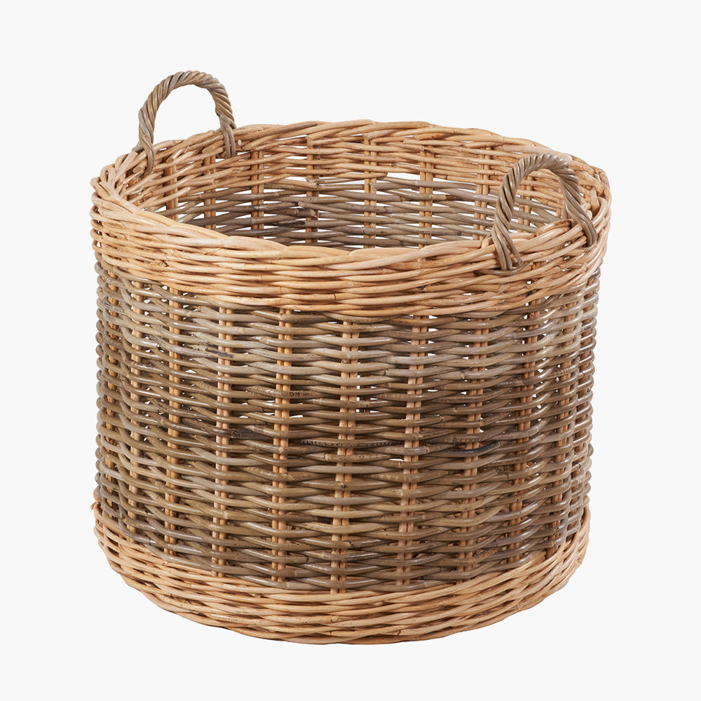Designed from authentic Kubu rattan in a round silhouette, the grey and white weave brings a refined, versatile look that works with a range of interiors while keeping items neatly contained.