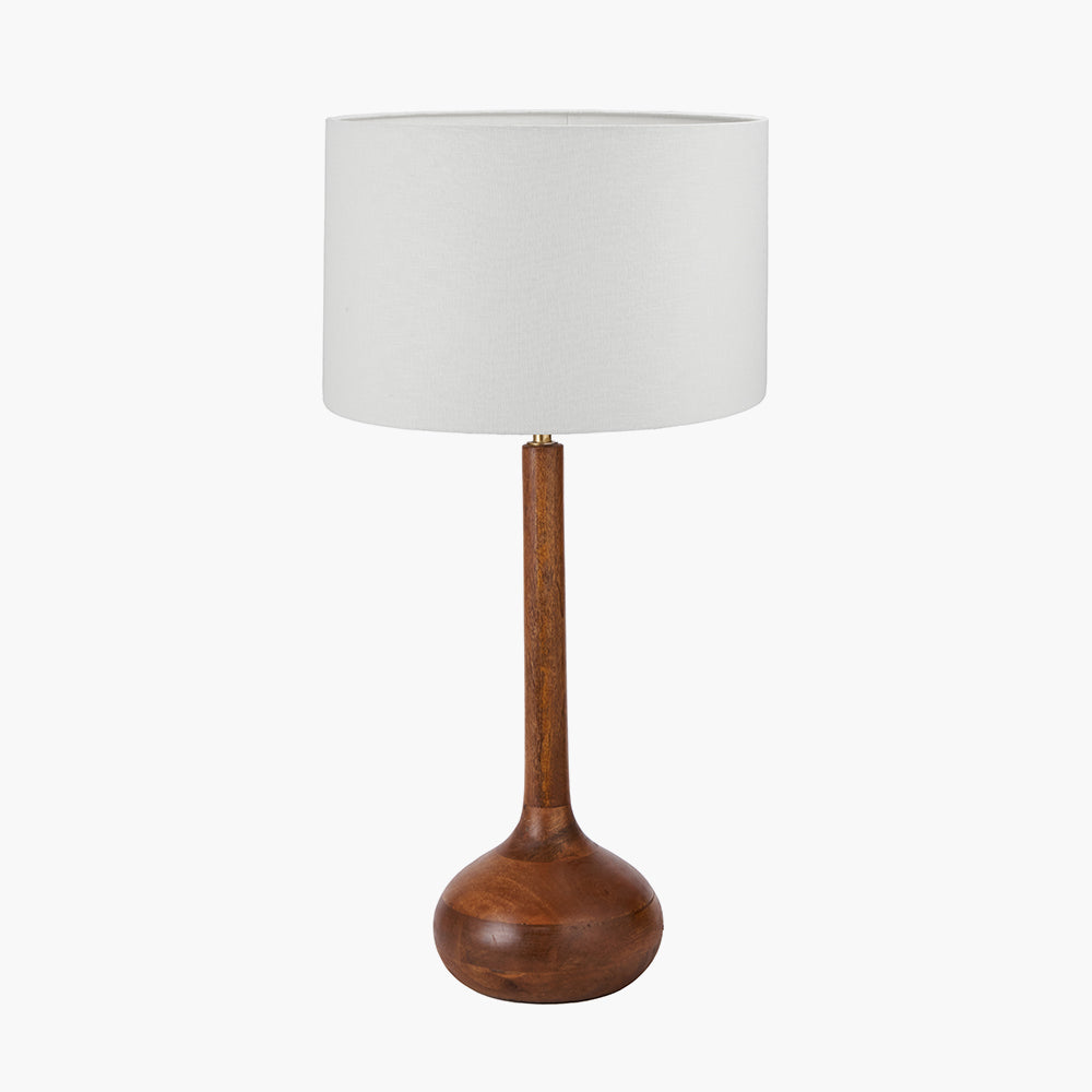 Toma Oiled Wood Tall Neck Table Lamp Base with Lino 35cm White Self Lined Linen Cylinder Lampshade