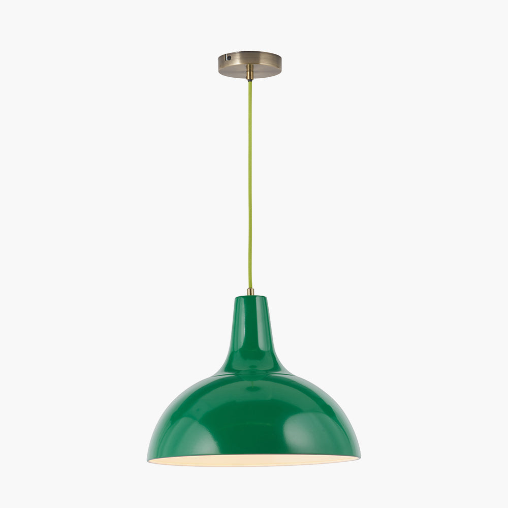 Featuring a striking emerald green dome, this pendant light is not just about aesthetics; it's about creating an ambiance. The contrasting citrus green fabric flex adds an unexpected twist, making it a captivating centerpiece in any room.