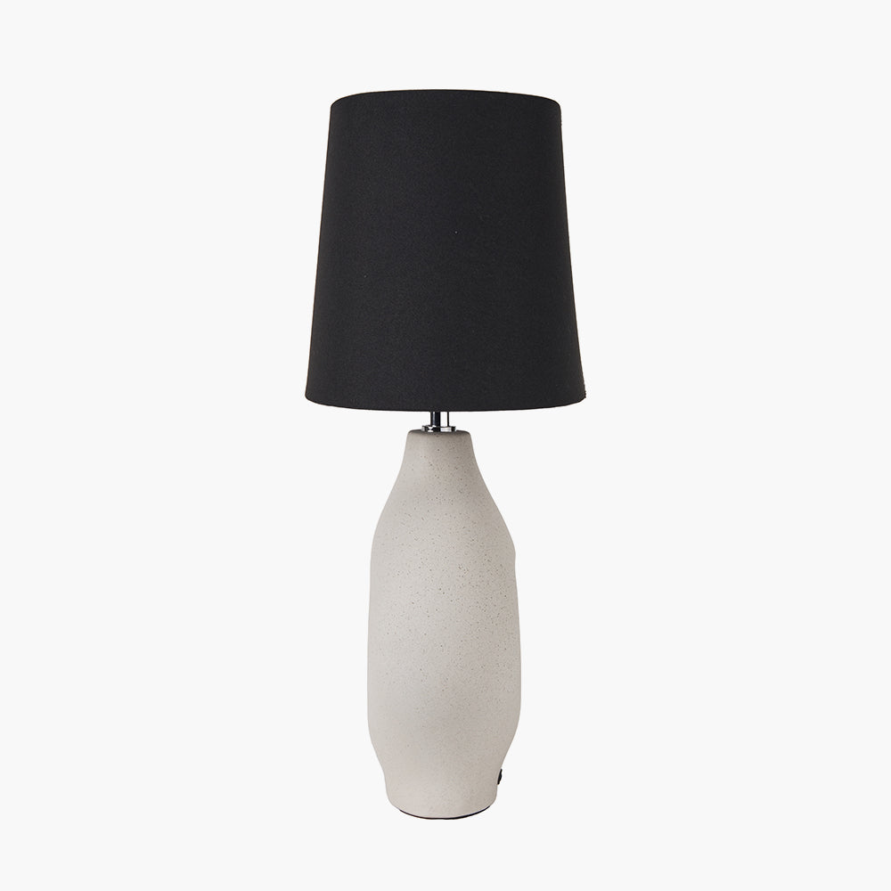 Crafted from high-quality organic ceramic, the lamp's neutral base is complemented by a striking black, self-lined tapered shade, making it a contemporary statement piece for your home. Here are the standout features:
