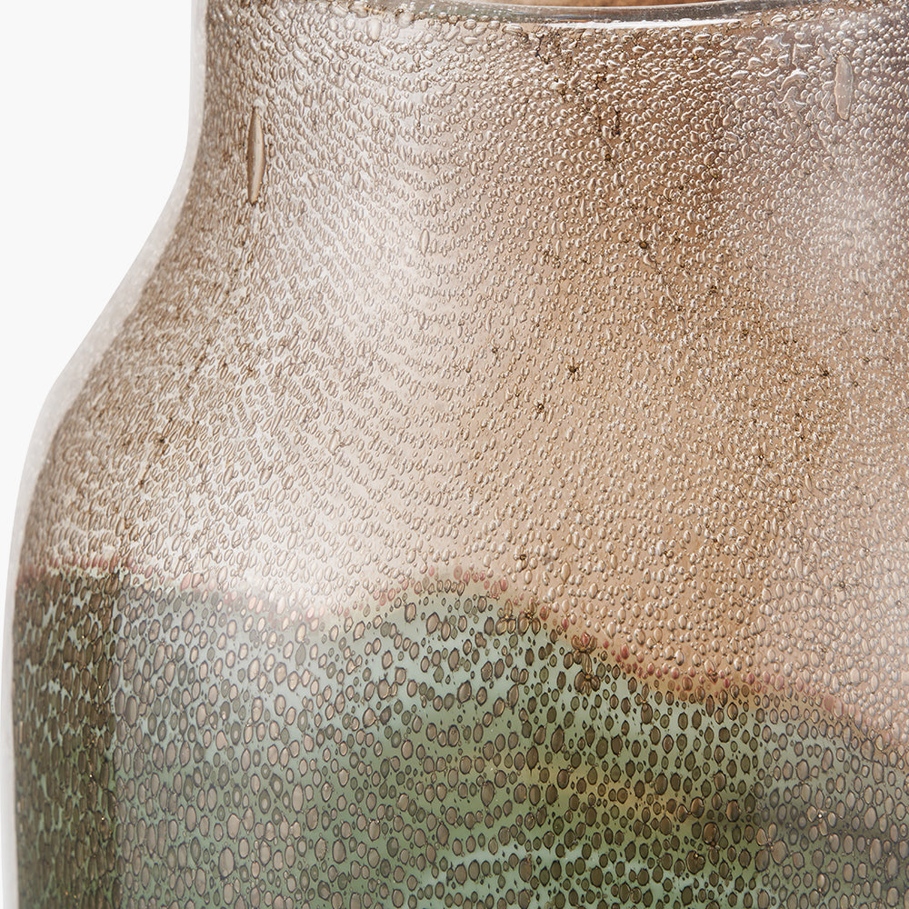 Enhance the ambience of your space with this exquisite hand-blown brown and green glass table lamp base. The vase, with a bubble finish and green design inherent in the glass, is a stunning work of art. Perfect as a stand-alone piece or adorned with fresh or dried flowers, this luxurious vase exudes style.
