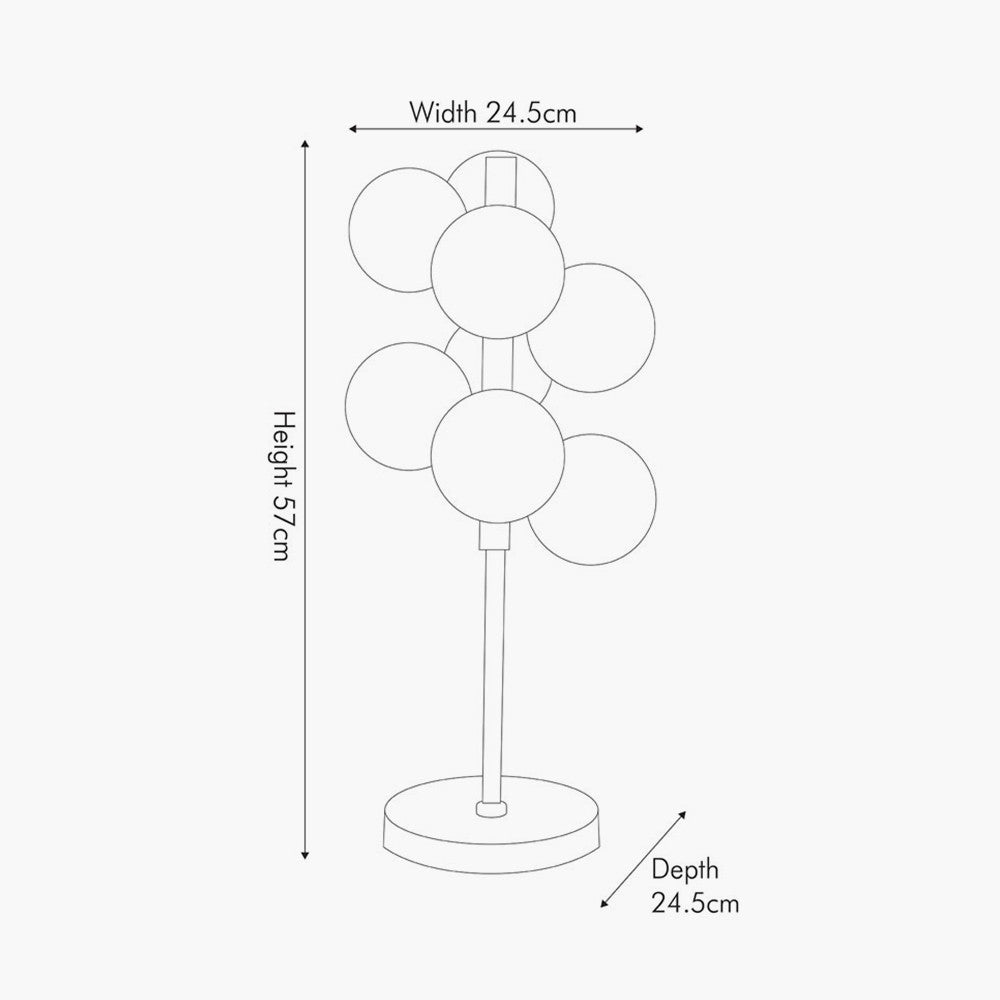 Illuminate your space with the Vecchio Lustre Glass Orb and Gold Metal Table Lamp, a stunning fusion of contemporary design and elegant craftsmanship. Perfect for adding a touch of sophistication to any room, this lamp features a captivating arrangement of 8 lustrous glass orbs that create a mesmerizing visual display.