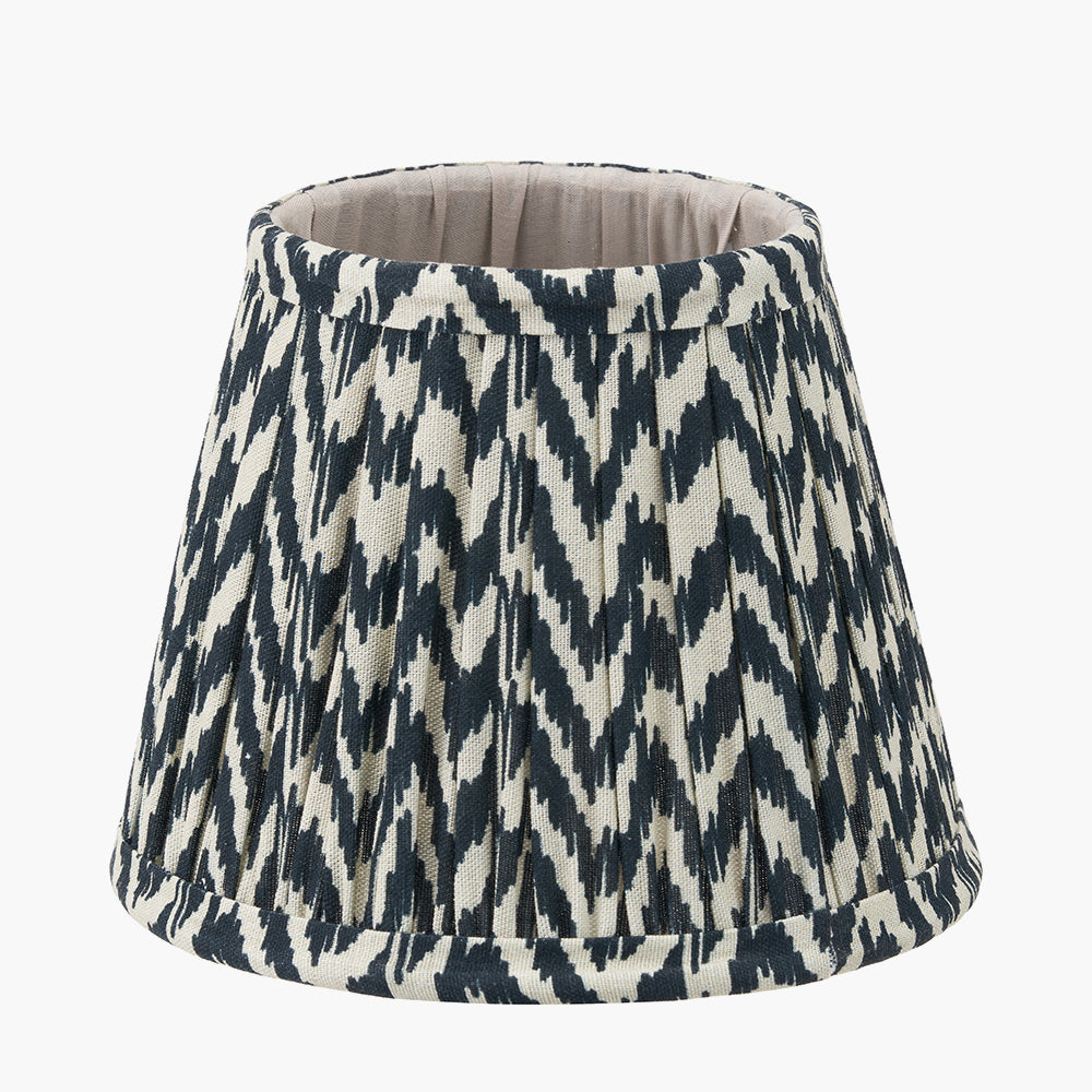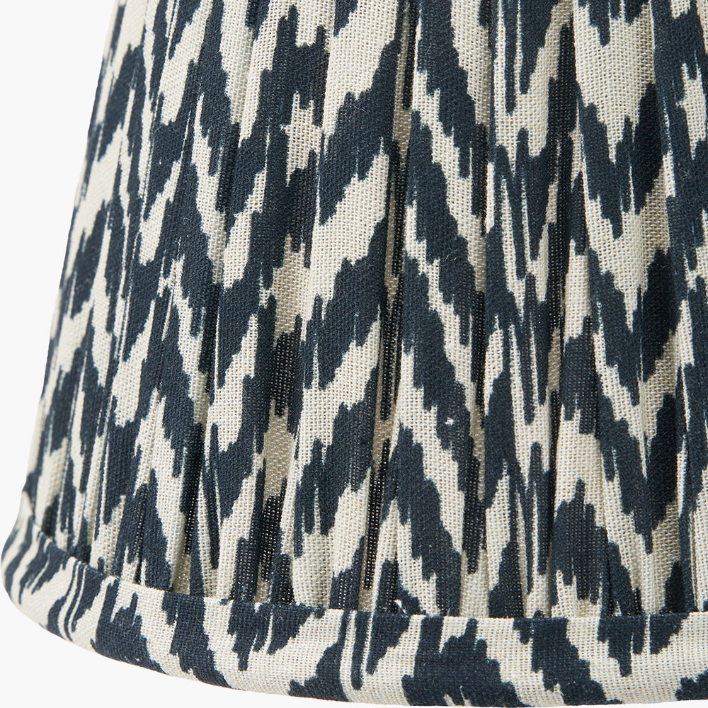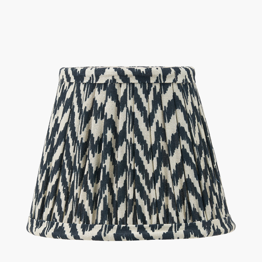 Featuring an in-house curated print and reminiscent of the ikat style, this tapered geo print is finished in a black colour and hand mushroom pleated to add a soft edge to the linear design. The 16cm shade is in a tapered profile and helps create a modern/classic look.