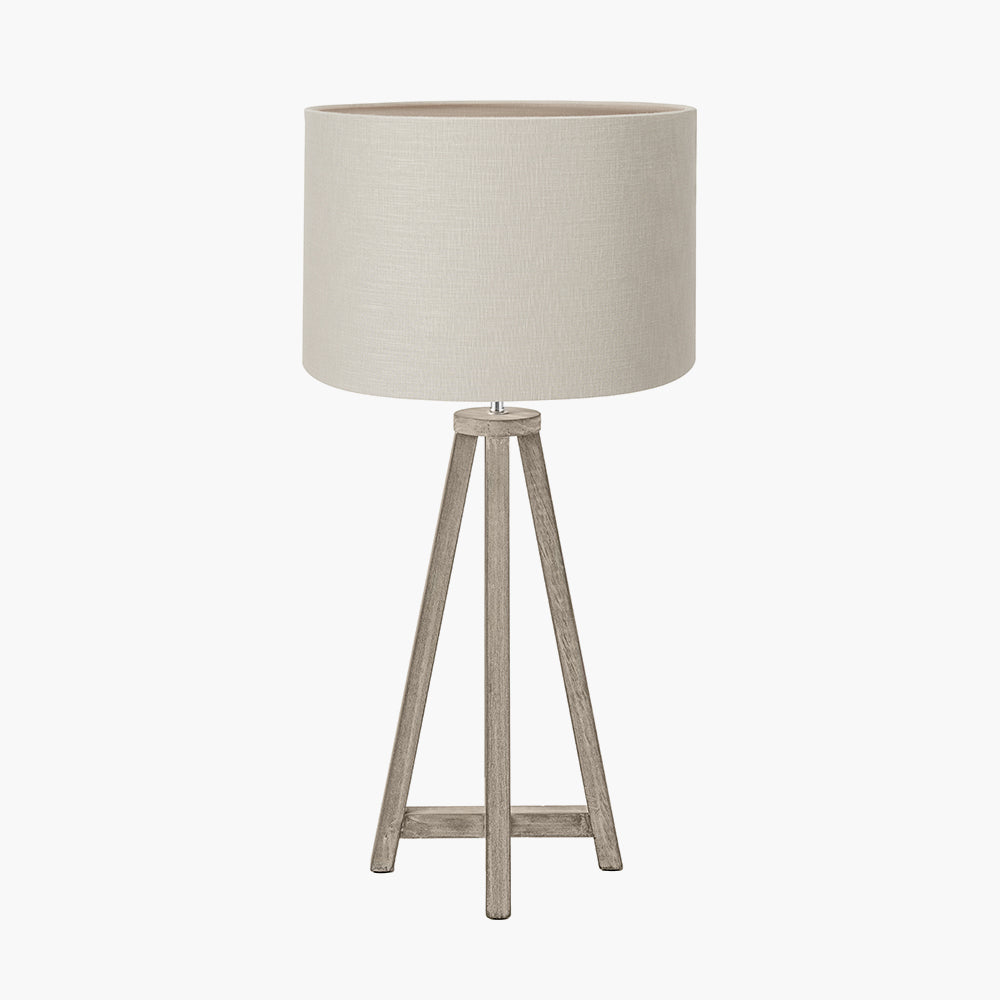 Whitby Grey Wash Wood Tapered 4 Post Table Lamp Base with Lino 35cm Grey Self Lined Linen Cylinder Lampshade