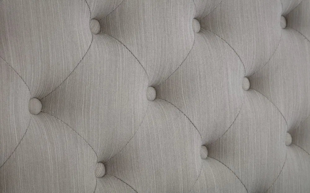- Deep buttoned headboard creates a plush, statement focal point for the room.