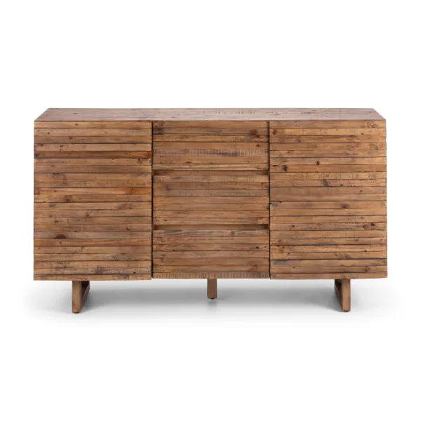 Meet the Woburn Sideboard, a masterclass in craftsmanship that blends gorgeous reclaimed wood with superior design. This piece fuses rustic charm with contemporary lines, delivering a classic, versatile look that fits beautifully in modern homes.