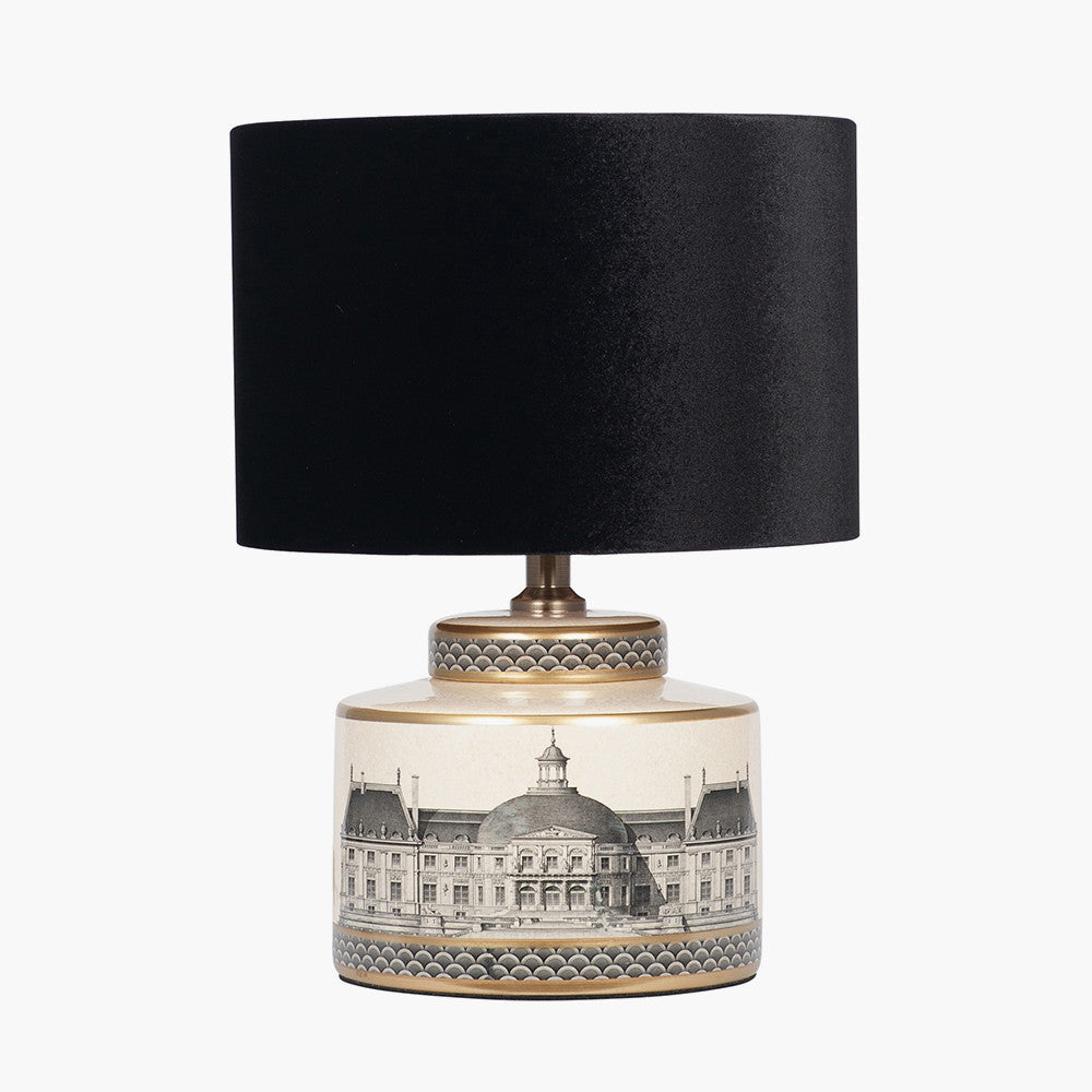 Illuminate Your Space with the Wren Black and Cream Building Print Ceramic Table Lamp Base