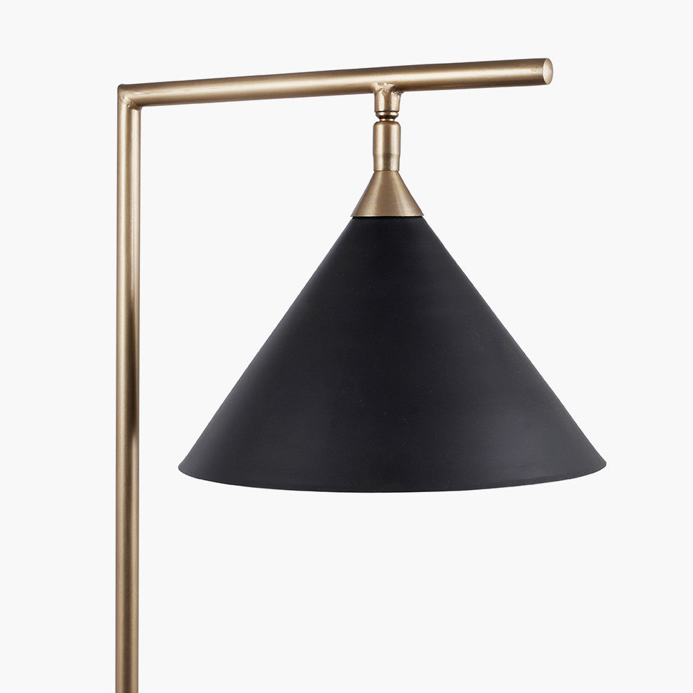 This sleek matt black and antique brass metal floor lamp is sure to make an impact in your interior with its sophisticated styling. The floor lamp has a moveable head which enables you to direct the light from its fabulous conical shade, wherever you desire.